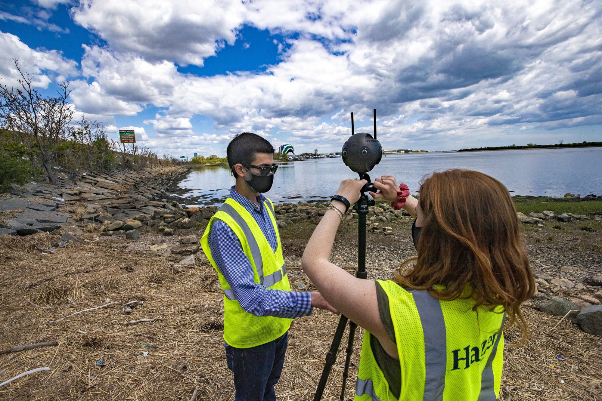 Agrawal and Gleason position the camera on the side of a small bridge overlooking a muddy creek near Neponset Circle in Dorchester. To their back, the mid-day traffic of I-93 roars. Gleason hits a button and the camera begins humming. It lets out three loud beeps and then a long shutter click. Similar to the cameras Google uses for its Street View maps, this little machine could play a big role in helping Boston resolve some of its stormwater problems.