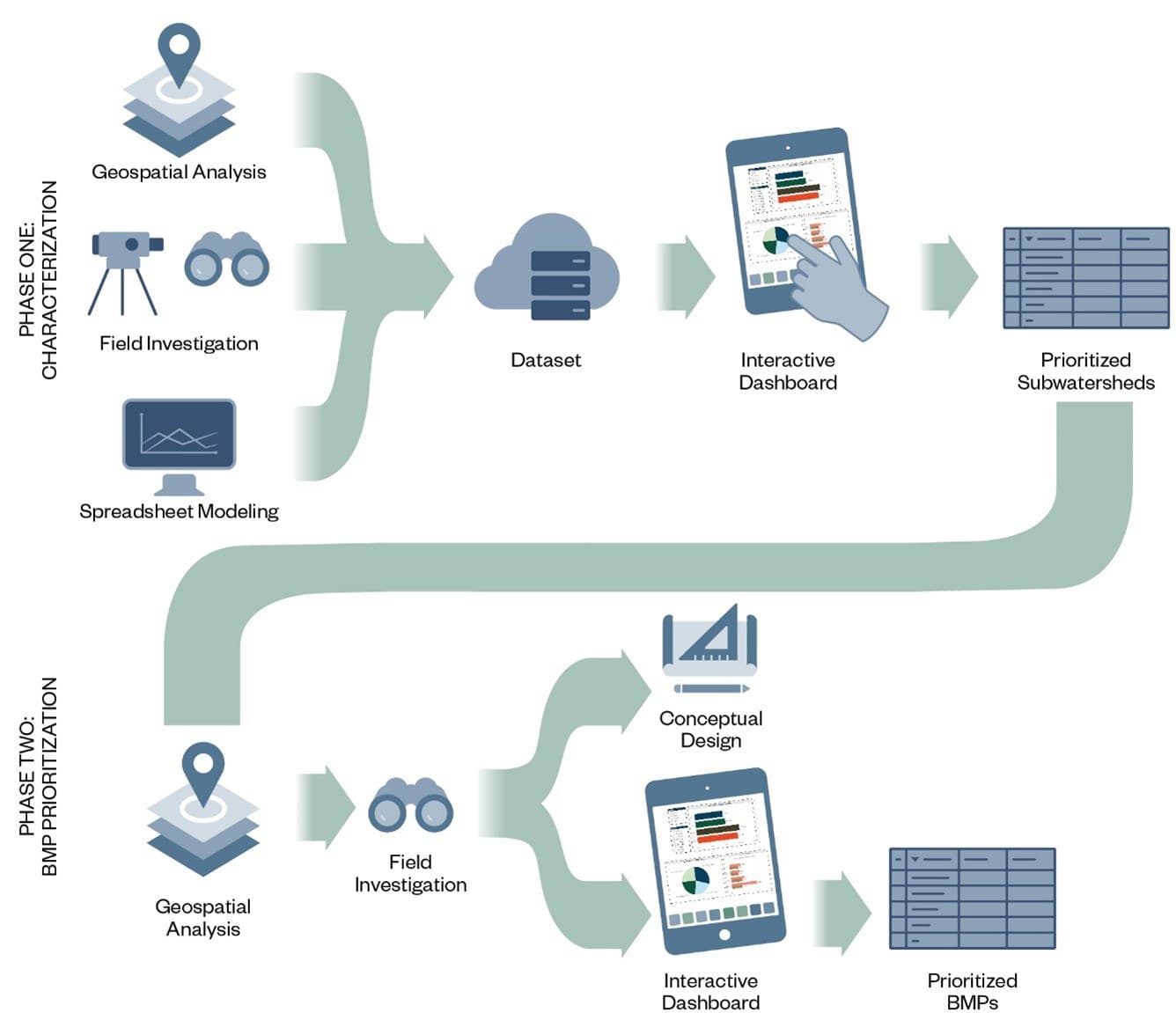 To characterize watersheds and identify BMP implementation opportunities, two separate but related phases were carried out (Figure 2).