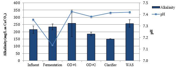 Average concentrations alkalinity, nitrogen species, and phosphate at the Falkenburg Advanced Wastewater Treatment Plant.