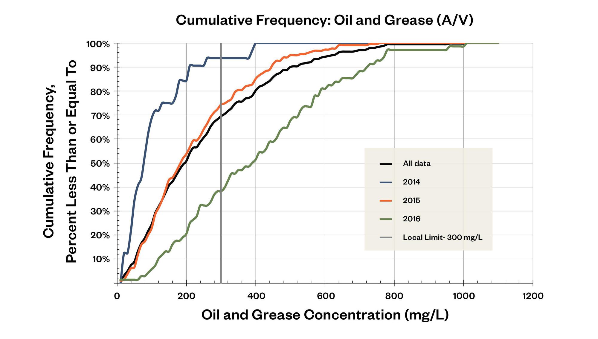 As part of this project, we conducted a survey of POTW sewer use ordinances for total oil and grease, FOG, TPH, and pH. Approximately 50 utilities were queried with locations ranging from the Mid-Atlantic region to other parts of the United States. The survey suggested that there is a wide range of local limits applied to total oil and grease, FOG, and TPH. 17 utilities implemented narrative criteria for TPH and 25 out of 50 utilities implemented narrative criteria for FOG. Of the 25 remaining utilities, the numeric local limits for FOG ranged from 50 to 300 mg/L. Total oil and grease ranged from 100 to 600 mg/L. There were three utilities that prohibited any amount of FOG. Additionally, there was a wide range of pH criteria adopted.