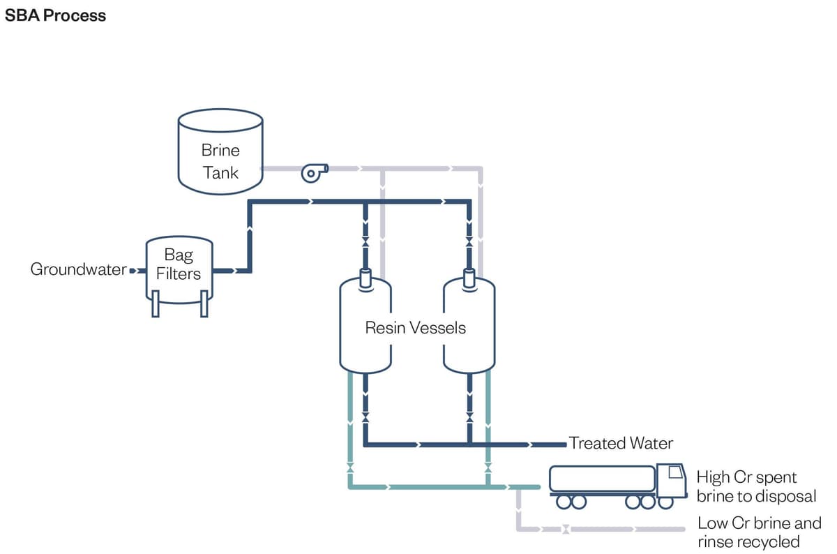 The Indio Water Authority decided to opt for strong base ion exchange technology, which uses filters and tanks filled with resin beads coated with chloride that attracts the chromium-6 and removes it from the water.