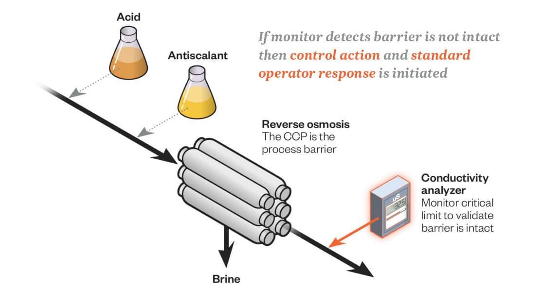An example of a reverse osmosis critical control point and electrical conductivity as a critical monitor.