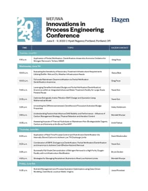 (PORTLAND, OR – June 1, 2023) – Hazen and Sawyer is attending the Innovations in Process Engineering (IPE) Conference, jointly hosted by the Water Environment Federation (WEF) and the International Water Association (IWA), being held June 6-9 in Portland, Oregon.