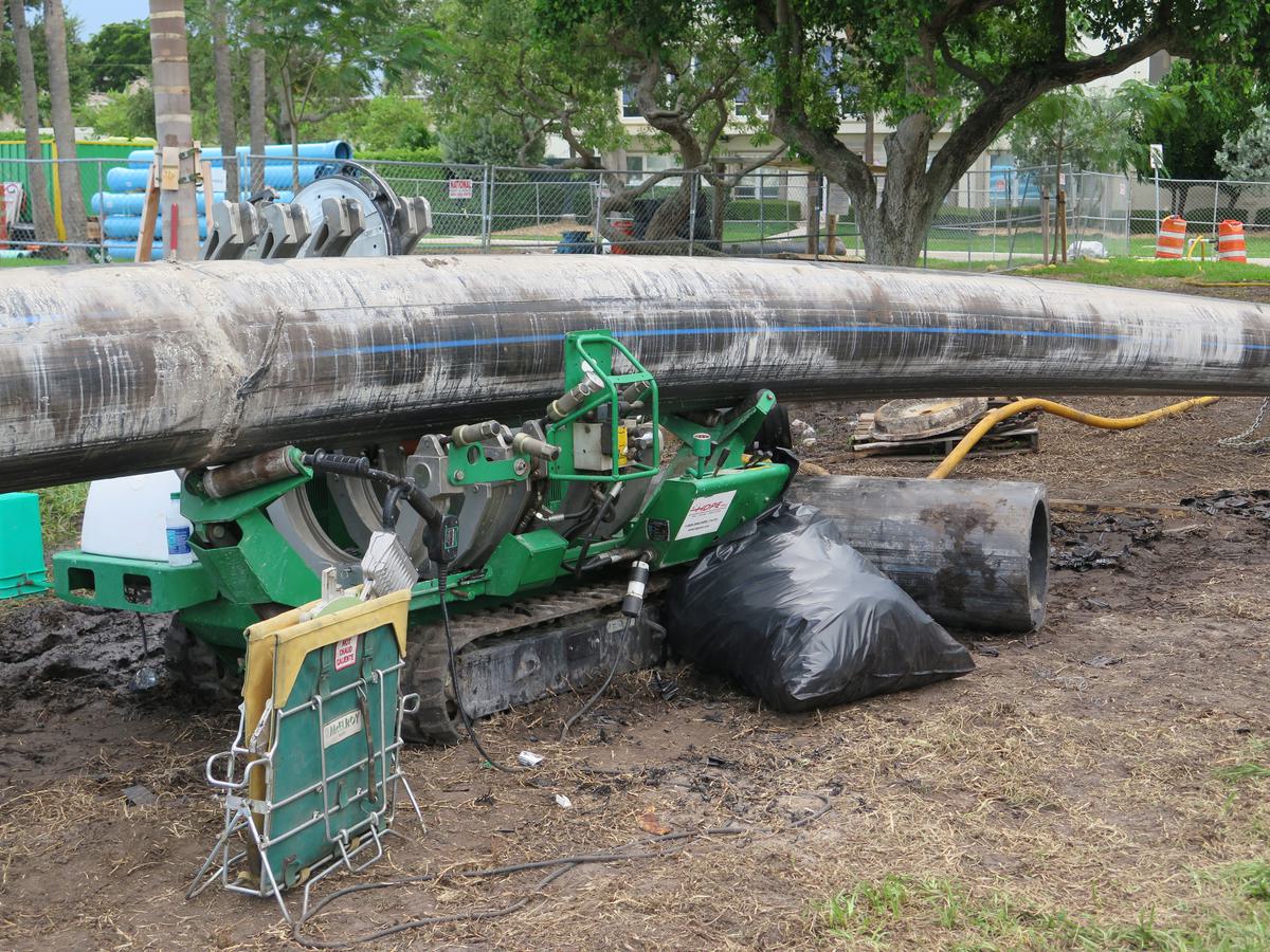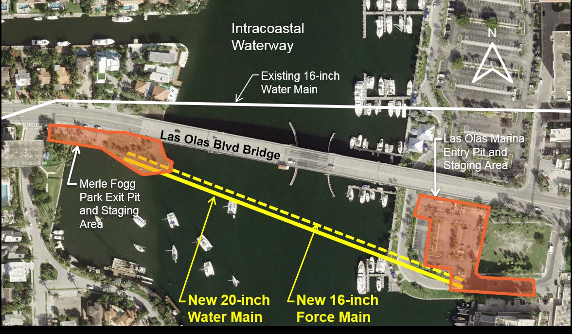 The major scope of work included construction of 1,220 feet of 20-inch diameter water main crossing of the ICW, using high-density polyethylene (HDPE) pipe installed via horizontal directional drilling (HDD) at a depth of about 60 feet below water surface and construction of 1,220 feet of 16-inch diameter force main crossing of the ICW, using high-density polyethylene pipe installed via HDD at a depth of about 60 feet below water surface.