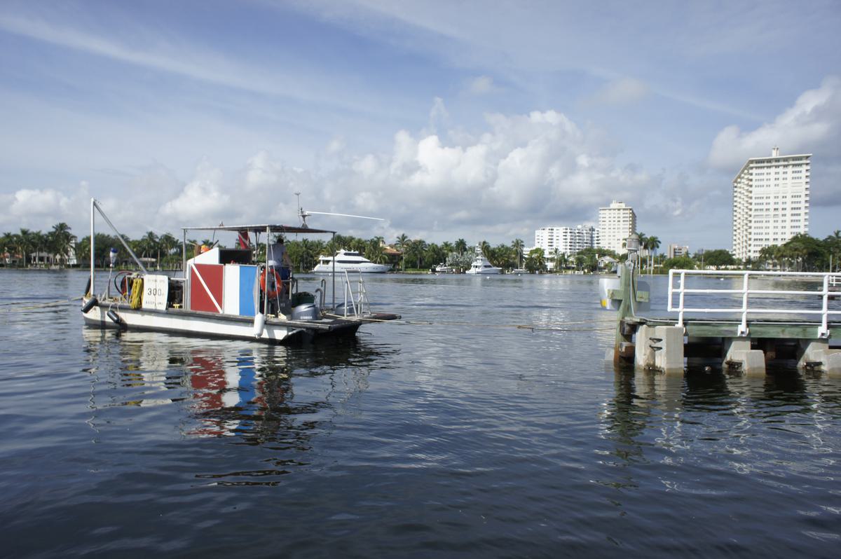Divers preparing for benthic survey of the Intracoastal Waterway south of Las Olas Bridge.