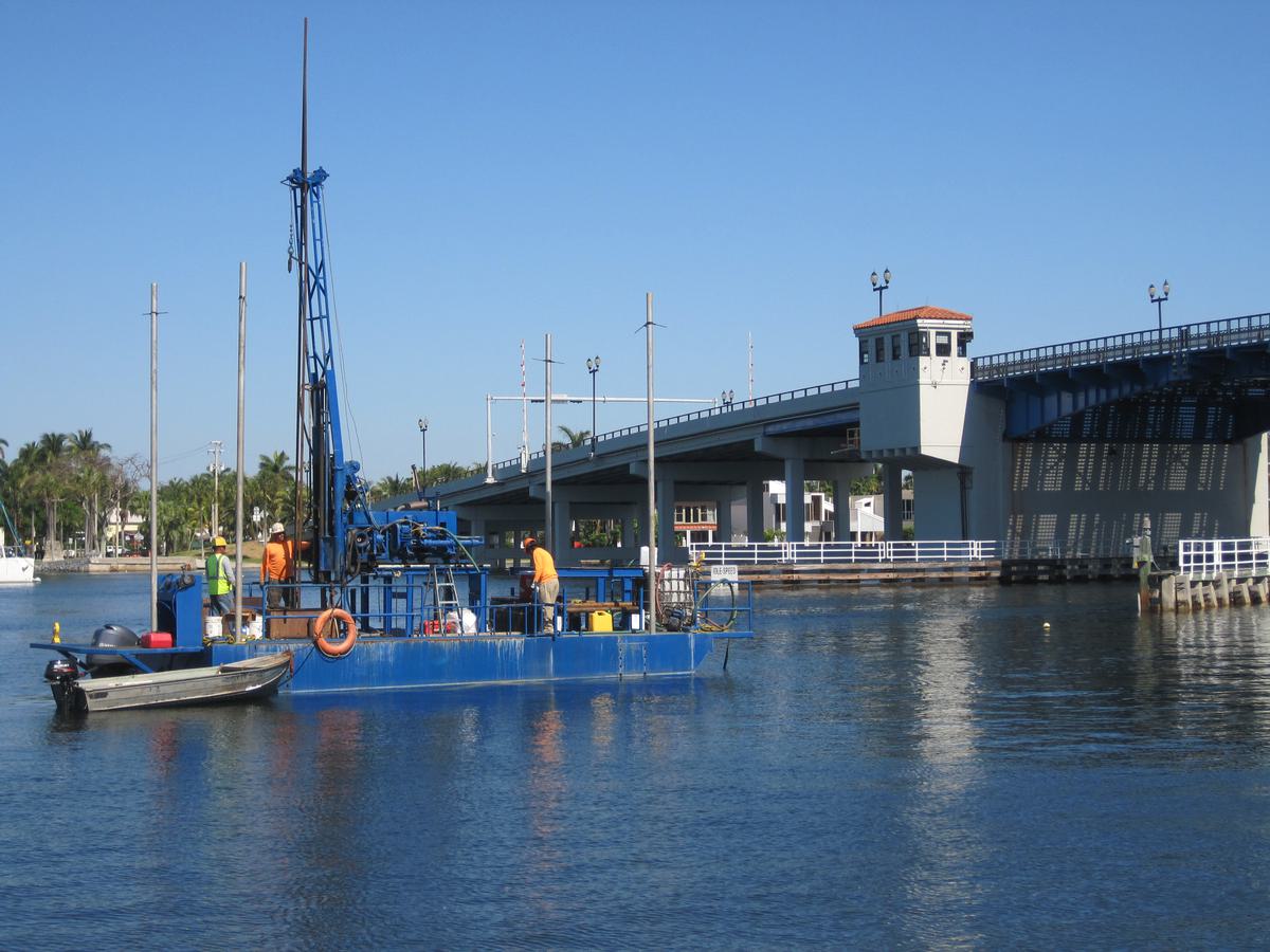 Geotechnical engineer collecting rock cores in Intracoastal Waterway.