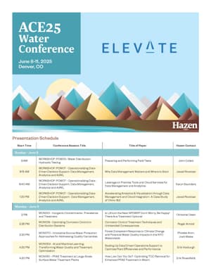 (DENVER, CO – June 3, 2025) - Hazen experts will present technical sessions, moderate panels and workshops, and share posters at the American Water Works Association (AWWA) 2025 Annual Conference Exhibition (ACE) in Denver, CO from June 8th to June 11th. Widely considered the world’s premier water conference, this year’s event features 30 Hazen presentations and moderated sessions in the main program, plus participation in specialty workshops and poster sessions.