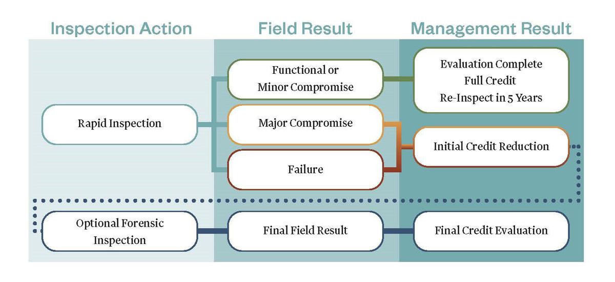 - Define specific thresholds for project failure that trigger the need for either a) project repair, b) follow-up forensic reach investigations or c) or partial or complete loss of pollutant reduction credits.