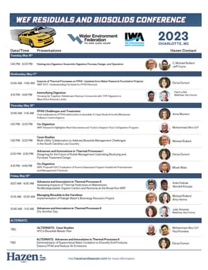 The 2023 WEF/IWA Biosolids Conference offers Hazen an ideal platform to share recent achievements, from PFAS destruction to thermal hydrolysis