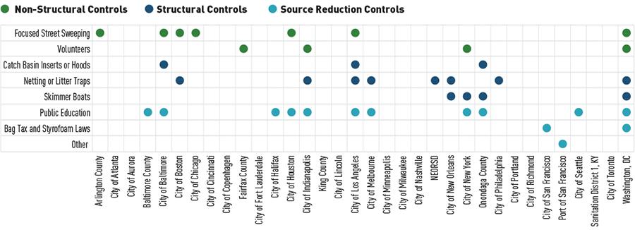 The range of floatables reduction strategies used by the participating communities is shown above.
