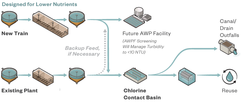 Beyond rehab for the existing plant, a second phase of work focused on process improvements to provide stable effluent quality for the future. Historical performance showed that existing processes at the plant could not meet water quality targets for direct potable reuse.