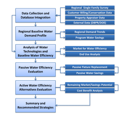 - Assessment of the maximum potential water use reductions from active demand management programs as well as the likely passive evolution of higher water use efficiency due to fixture end-of-life and replacement.