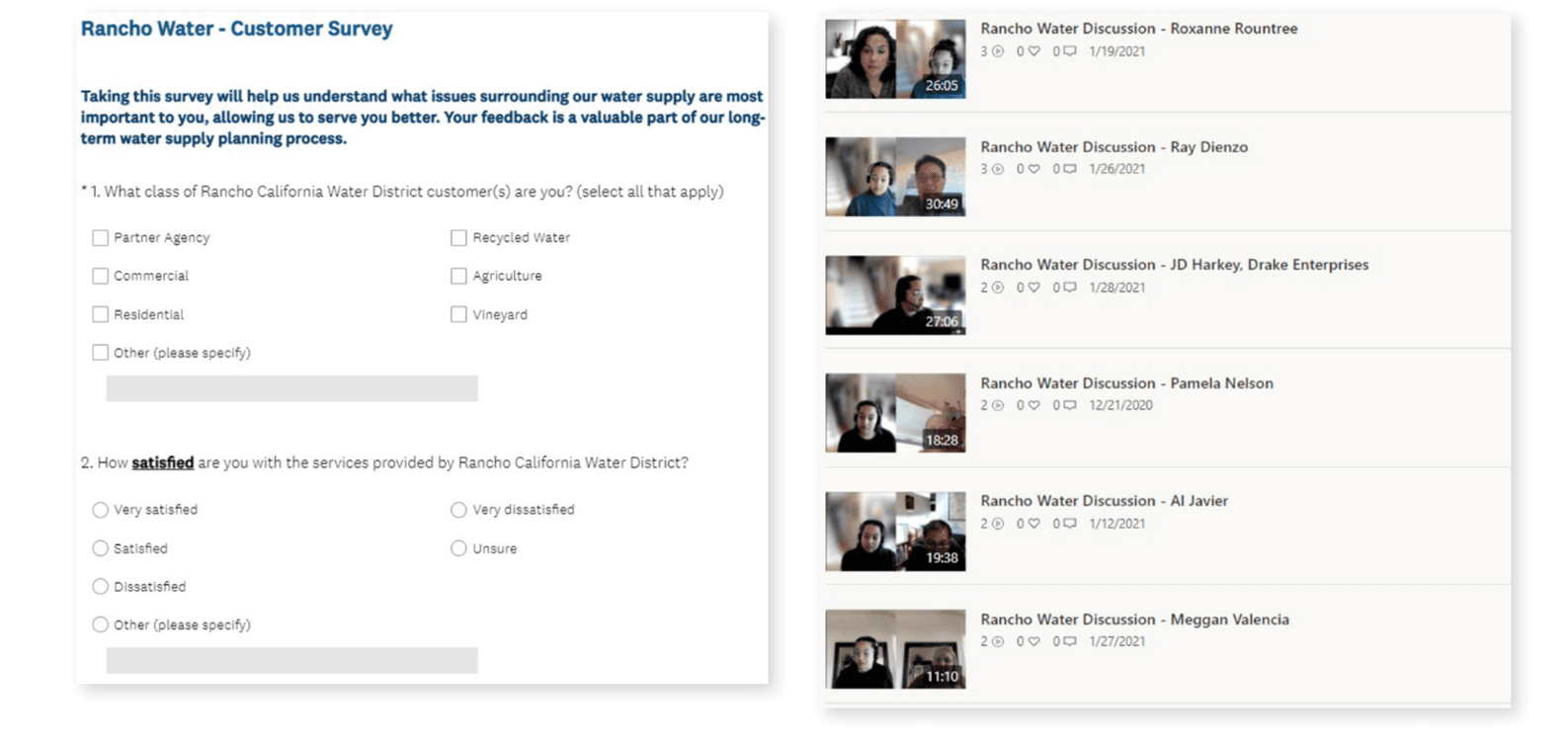 The team conducted one-on-one interviews with key stakeholders to gather background information on currently held attitudes toward Rancho Water. As is typical, stakeholders felt comfortable being more honest about their opinions when talking with a third-party entity doing research on behalf of the utility than they would have talking with the utility directly. These open dialogues produced some surprising insights: