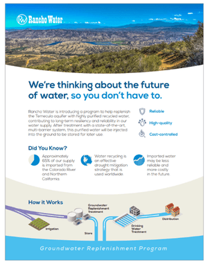 As part of a feasibility study for a new indirect potable reuse program, Rancho Water sought guidance on strategic communications to gauge public support and envision a pathway for implementation.